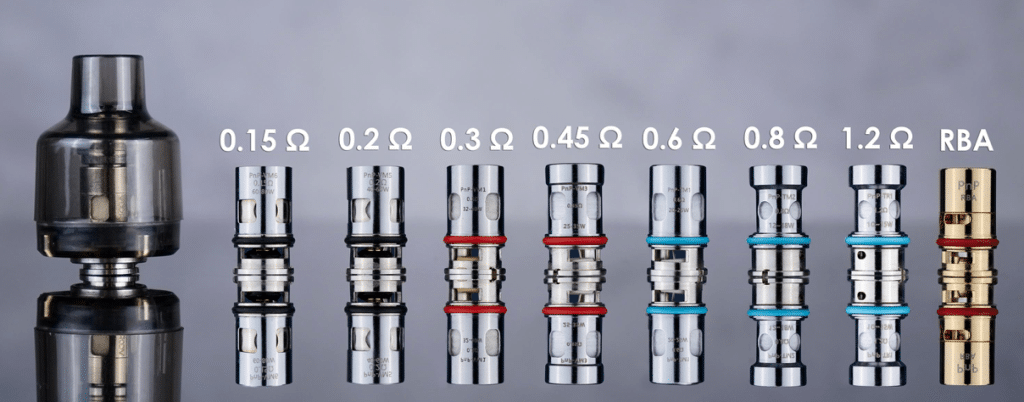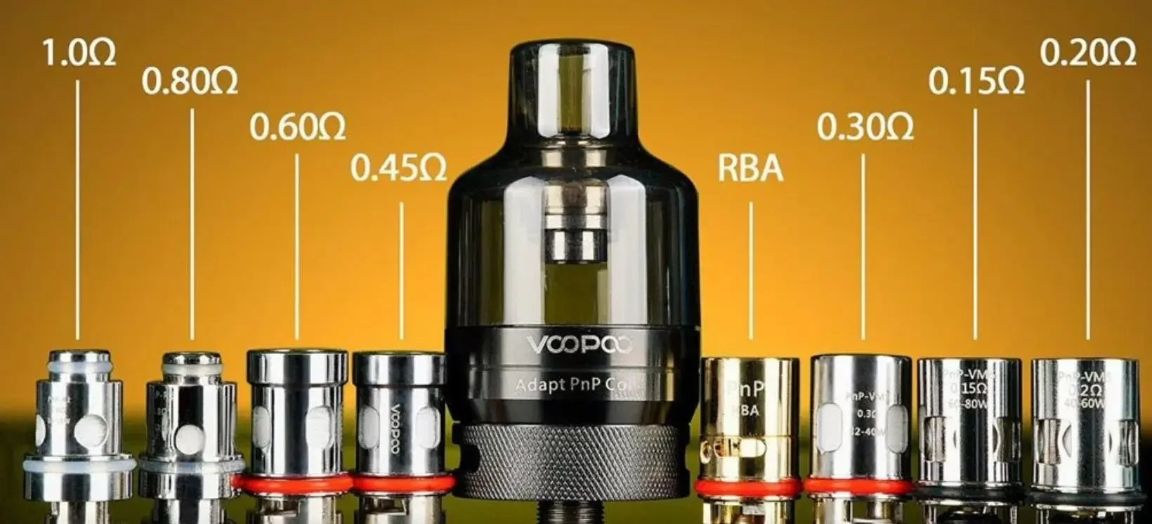 ซึ่งโดยหลักการแล้ว คอยล์ PnP มักจะแบ่งเป็น 2 กลุ่มใหญ่ ได้แก่ คอยล์ที่มากกว่า 1.0 โอห์ม(กลุ่มคอยล์ MTL) จะมีรูสำลีที่รับน้ำยาบุหรี่ไฟฟ้าขนาดเล็ก โดยจะใช้เพื่อสูบกลุ่มควันครั้งละน้อยกว่า และ คอยล์ที่น้อยกว่า 1.0 โอห์ม(กลุ่มซับโอห์มคอยล์) ที่จะมีรูสำลีที่ซึบซับน้ำยาบุหรี่ไฟฟ้ากว้างกว่า โดยสามารถสูบควันได้คำ(Puff)ต่อครั้งจำนวนมากและใหญ่กว่า เป็นต้น