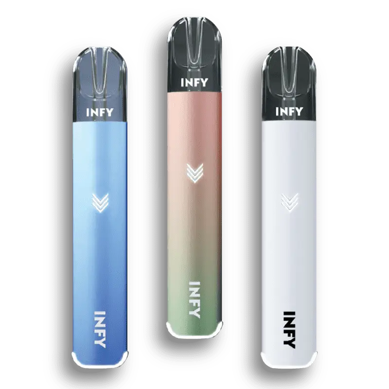 Infy (Closed Pod System) หรือ พอตINFY มอบประสบการณ์การสูบพอตที่ง่ายดายและสะดวกสบาย พอตนั้นเติมน้ำยาบุหรี่ไฟฟ้าแบบเปลี่ยนหัวได้ไว้ล่วงหน้าและสามารถเสียบเข้ากับตัวเครื่องได้อย่างง่ายดาย เมื่อหัวพอตหมด ให้เปลี่ยนหัวพอตใหม่ ตัวเครื่องมีให้เลือก 9 สีและมีเทคโนโลยีการทำความร้อนแบบคอยล์เซรามิกพร้อมกำลังไฟแรงสูง และการชาร์จพอตเร็ว Type-C วัสดุทำด้วยผิวสีเมทัลลิก พร้อมมีไฟแสดงสถานะการหายใจรูปลูกศรช่วยเพิ่มความสวยงามดูดีมีสไตล์ให้กับพอตแบบเปลี่ยนหัวได้ชิ้นนี้