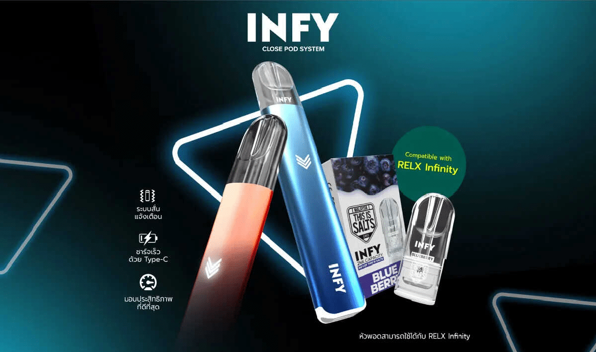 Infy หรือ พอตอินฟี่ ได้รับชื่อเสียงที่ดีด้าน น้ำยาพอต หรือน้ำยาบุหรี่ไฟฟ้า(This is Salt) โดดเด่นด้านราคาถูก และจำนวนน้ำยาที่เพิ่มขึ้น ผู้ซื้อสามารถดูดพอตได้ยาวนานยิ่งขึ้น โดยมอบประสบการณ์ที่คล้ายคลึงกับ Relx พอต หากแต่มีราคาที่ถูกกว่า ซึ่งรุ่นที่ได้รับความนิยมได้แก่ InfyPod ที่แบตเตอรี่มากถึง 400 MaH