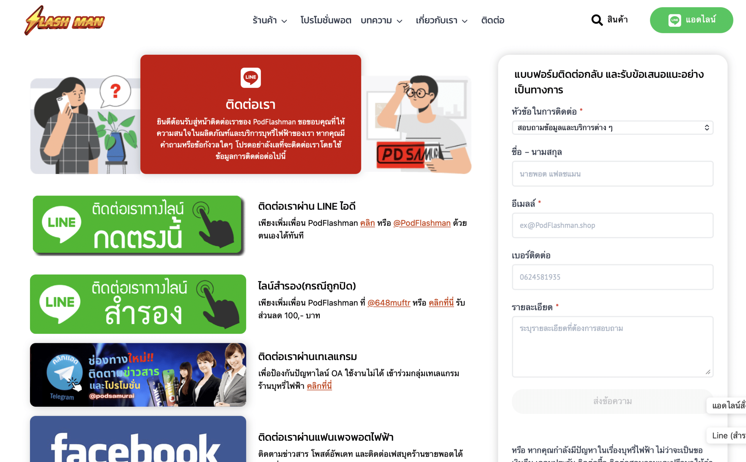 PodFlashman คือร้านค้าออนไลน์ที่คัดสินค้าแบบตัดพ่อค้าคนกลาง เน้นความเร็วในการบริการและการตอบคำถามให้ตรงจุด ความตั้งใจของร้านคือทำให้ลูกค้าเลือกได้ง่าย ได้ของไว และมีช่องทางติดต่อที่จับต้องได้จริง ตั้งแต่หน้าเว็บไปจนถึงการแอดไลน์คุยกับแอดมินแบบตรงๆ