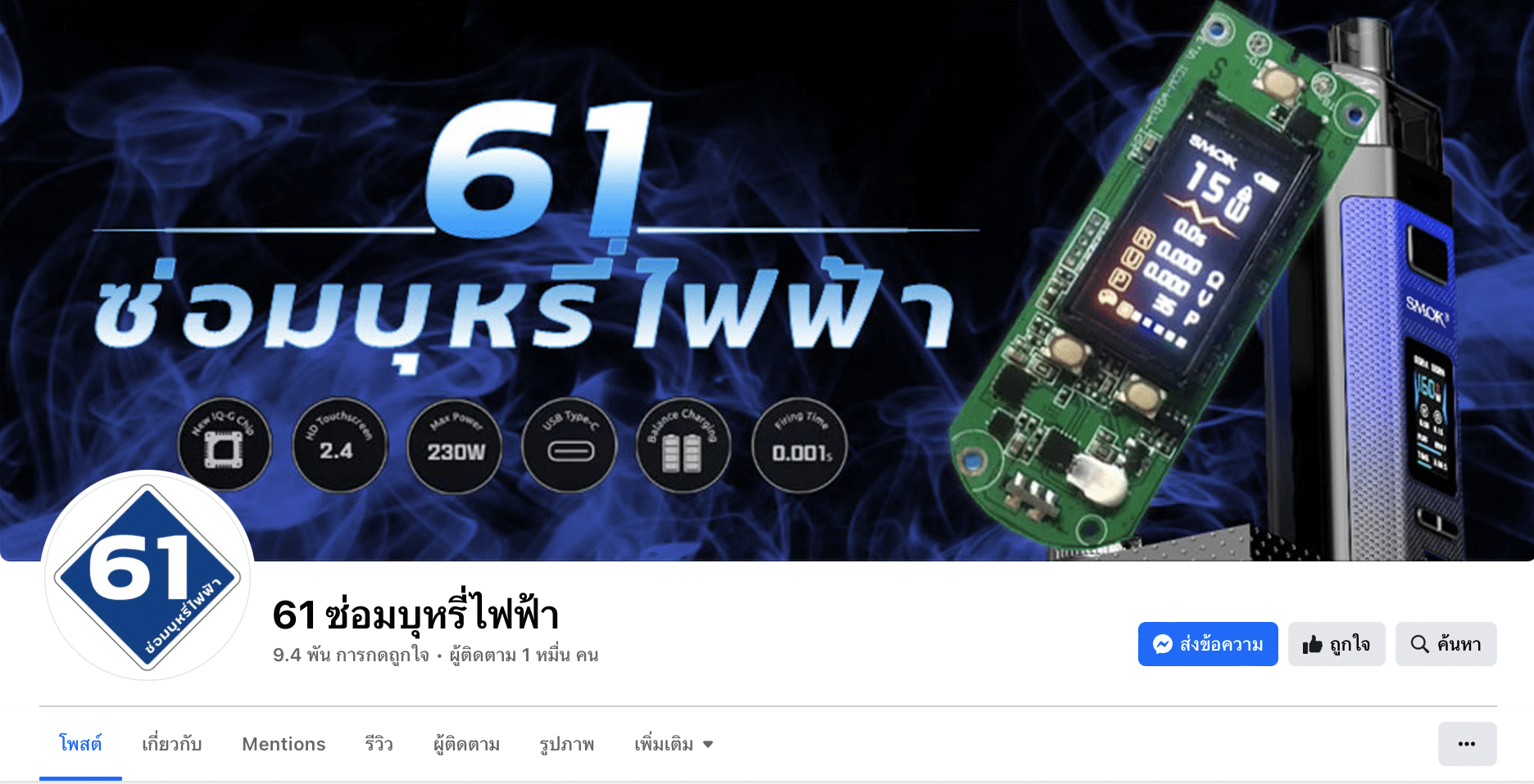 แฟนเพจ: แฟนเพจซ่อมบุหรี่ไฟฟ้าทุกรุ่นปรึกษาอาการฟรี 0929286870