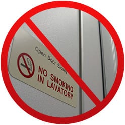 เป็นกรณีที่พบได้บ่อยในห้องน้ำห้าง และในมหาวิทยาลัยบางแห่ง ที่หาจุดสูบบุหรี่ได้ยาก ถึงจะเห็นใจนักสูบทุกท่าน แต่ก็ไม่ควรสูบบุหรี่ในห้องน้ำใดๆ เนื่องจากควันบุหรี่เมือสอง และจะเกิดคราบนิโคตินเป็นตวันบุหรี่มือสามตามสิ่งของต่างๆได้
