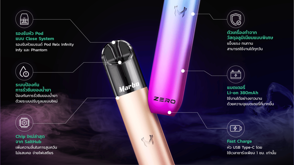 ฿890.00Salt Hub กลับมาอีกครั้งอย่างยิ่งใหญ่ในตลาดพอตไฟฟ้าด้วยการเปิดตัวเครื่องพอต Marbo Zero (มาโบซีโร่) Pod Kit ซึ่งถือเป็นหนึ่งในระบบปิดพอตไฟฟ้า (Pod-Systems) ที่ทรงพลังที่สุดของแบรนด์ โดยเครื่องพอต Marbo Zero ได้รับการวิจารณ์ในเชิงบวกจากผู้ใช้และถือเป็นพอตไฟฟ้าที่มีประสิทธิภาพสูงที่คู่แข่งหวาดกลัว