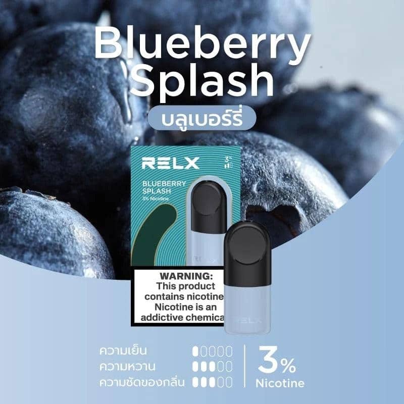 น้ำยาบุหรี่ไฟฟ้า หัวพอตพกพา (POD-SYSTEM) ของ relx infinity ในรสชาติสัมผัสที่เข้มข้นและน่ารับประทานของกลิ่น บลูเบอรี่ Blueberry Splash หัวพอตและน้ำยาบุหรี่ไฟฟ้า Relx ชนิดนี้เป็นสูตรเฉพาะ แนะนำให้ใช้ได้กับพอตรุ่น Relx ต่างๆเช่น Relx Infinity หรือ Relx Essential หรือ Relx Phantom หรือ Relx Lite แต่อย่างไรก็ตาม หัวพอตของ Relx infinity ยังสามารถรองรับการใช้ร่วมกันสำหรับพอตของยี่ห้อ Infy POD และเครื่องพอตของ Jues ได้เช่นกัน ดังนั้น โปรดตรวจสอบให้แน่ใจว่าคุณกำลังใช้พอต POD บุหรี่ไฟฟ้าที่เข้ากันได้ เพื่อรับประกันประสบการณ์การสูบตัวน้ำยาบุหรี่ไฟฟ้าที่ดีที่สุด น้ำยาจากหัวพอต อินฟินี้ตี้ (Relx Infinity POD) มีระดับนิโคติน (nicotine level) คือ 3% โดยเมื่อใช้กับพอตของ Relx, Infy และ Jues จะให้ปริมารณนิคในระดับปานกลาง เหมาะสำหรับผู้ที่ต้องการได้รับนิโคตินในความรู้สึกระดับตื่นตัวโดยทำให้รสชาติ บลูเบอรี่ ยังคงครบถ้วนและหอมอร่อยอยู่