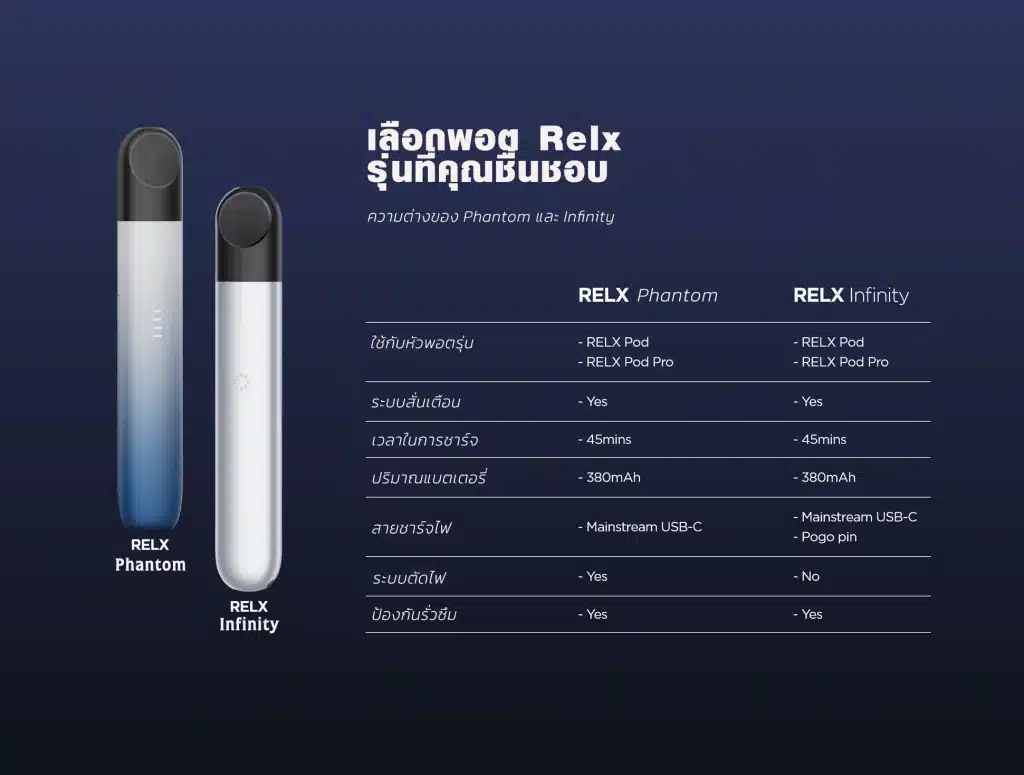 หากคุณเป็นหนึ่งคนที่กำลังสงสัยว่า ถ้าเทียบแล้ว RELX Phantom หรือ Relx infinity รุ่นไหนประสิทธิภาพดีกว่า ทั้งนี้เพื่อทำความเข้าใจที่ตรงกันแท้จริง RELX Phantom นั้นใช้ชื่อว่า RELX Infinity Plus หรือ Relx รุ่นพลัส ในประเทศไทยเช่นกัน